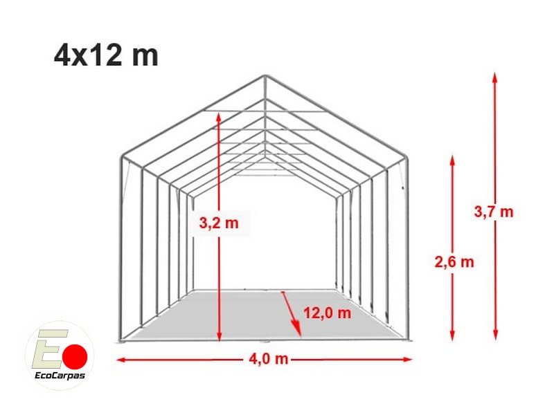 Carpa 4X12 MAX PVC 1400 2.6 IGNIFUGA Blanca con ventanas